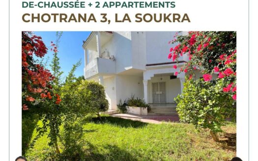 À vendre, un spacieux appartement S+2 de 160 m², situé en rez-de-chaussée au sein d’une ré ...