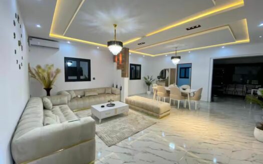 À louer à Midoun, Djerba, une villa S+3 moderne avec piscine, idéalement située à proximité de la Clinique Arij, dans un quartier calme et recherché. Édifiée su