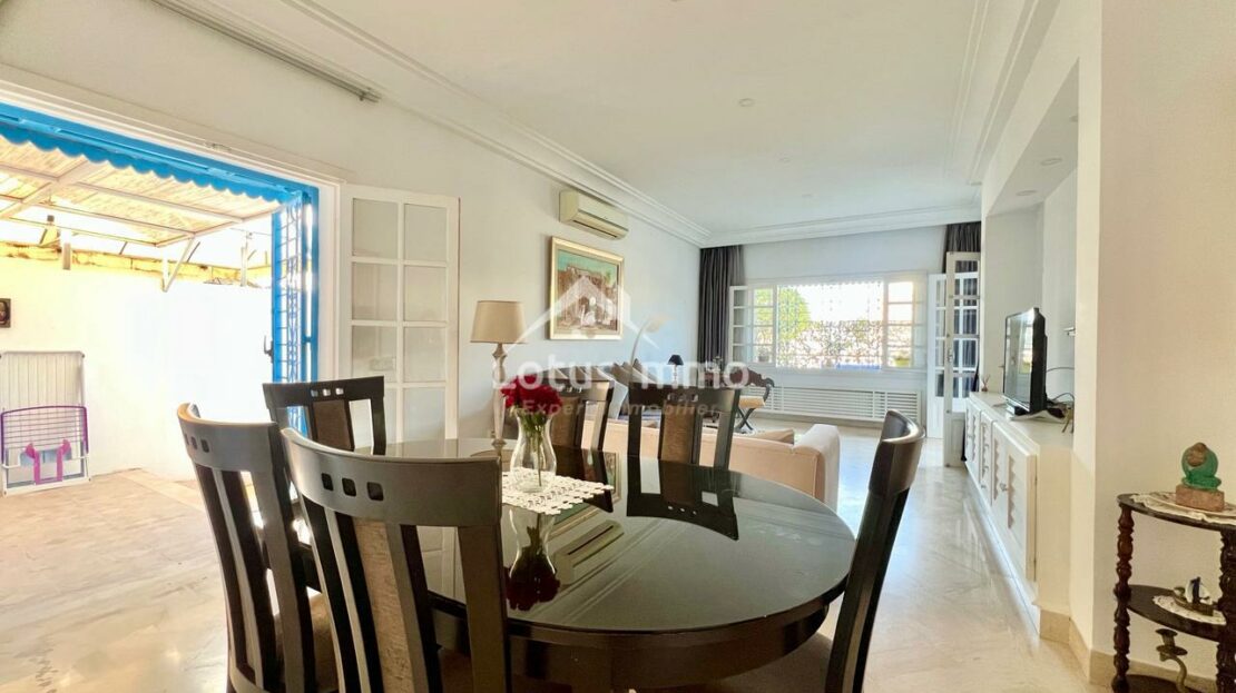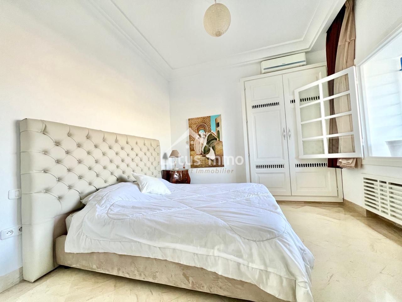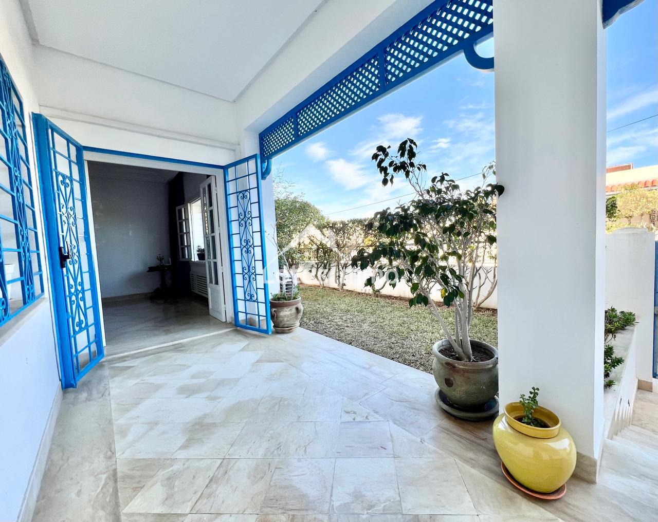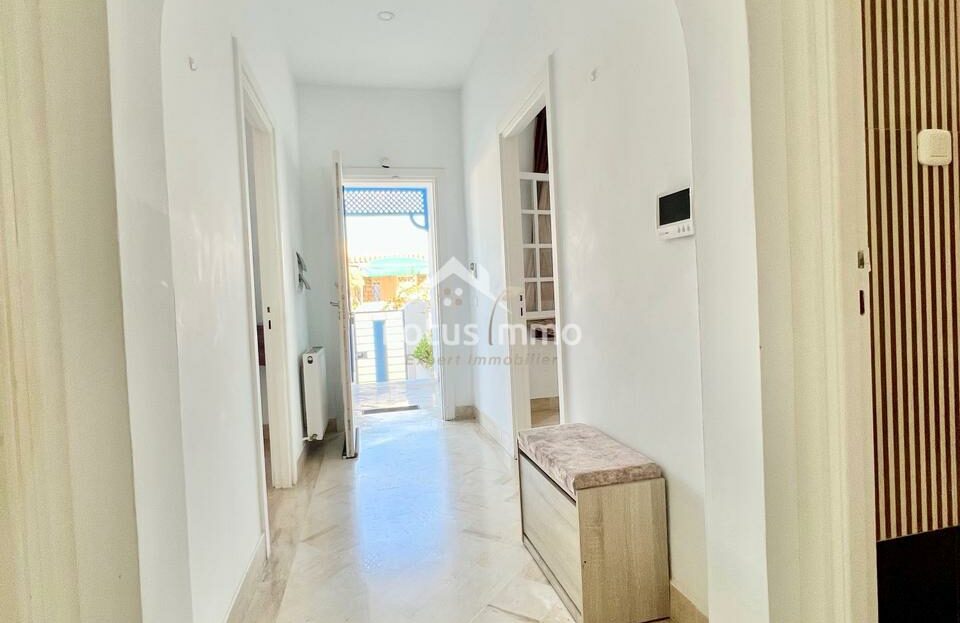 À louer, un magnifique rez-de-chaussée de villa S+2 entièrement meublé, situé à La Marsa Corniche, dans un quartier résidentiel calme, sécurisé et très recherché. Ce bien bénéficie d’une entrée totalement indépendante ainsi que d’un grand jardin verdoyant, offrant un cadre de vie privilégié alliant confort, intimité et proximité de la mer.