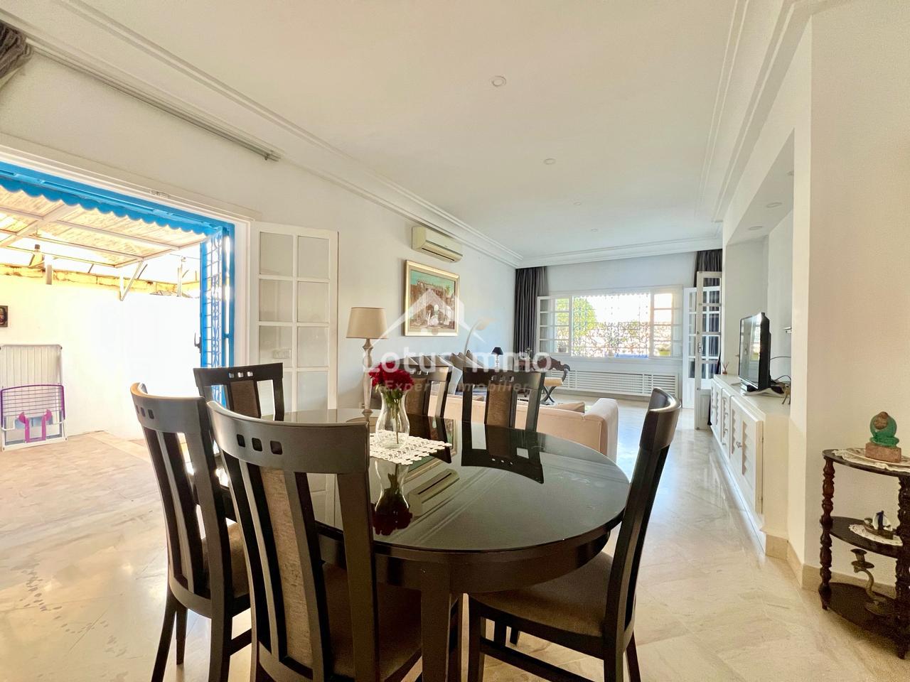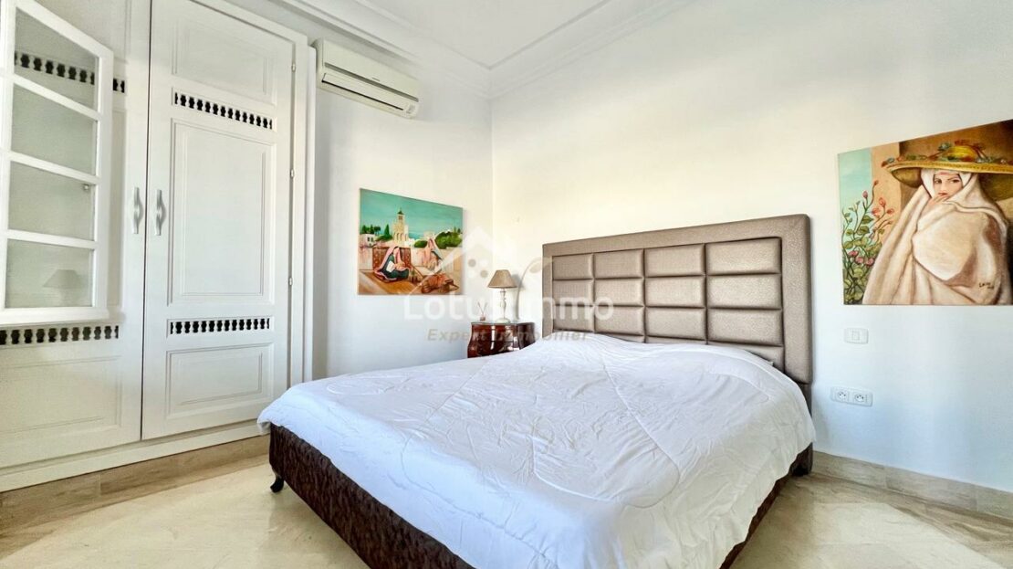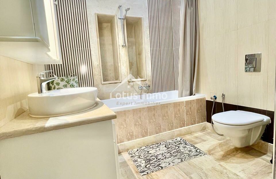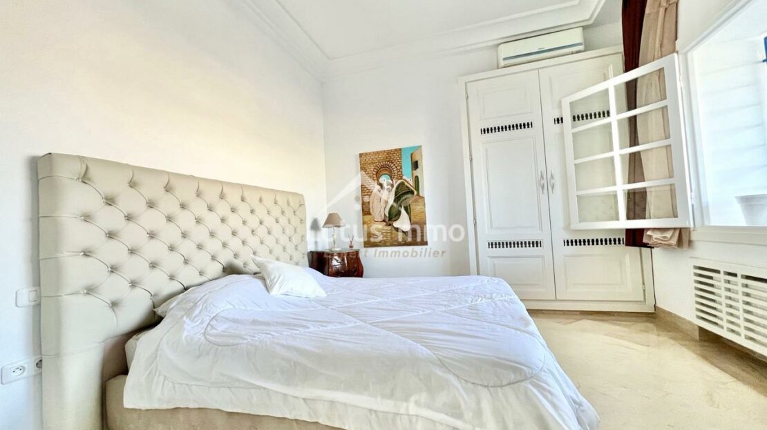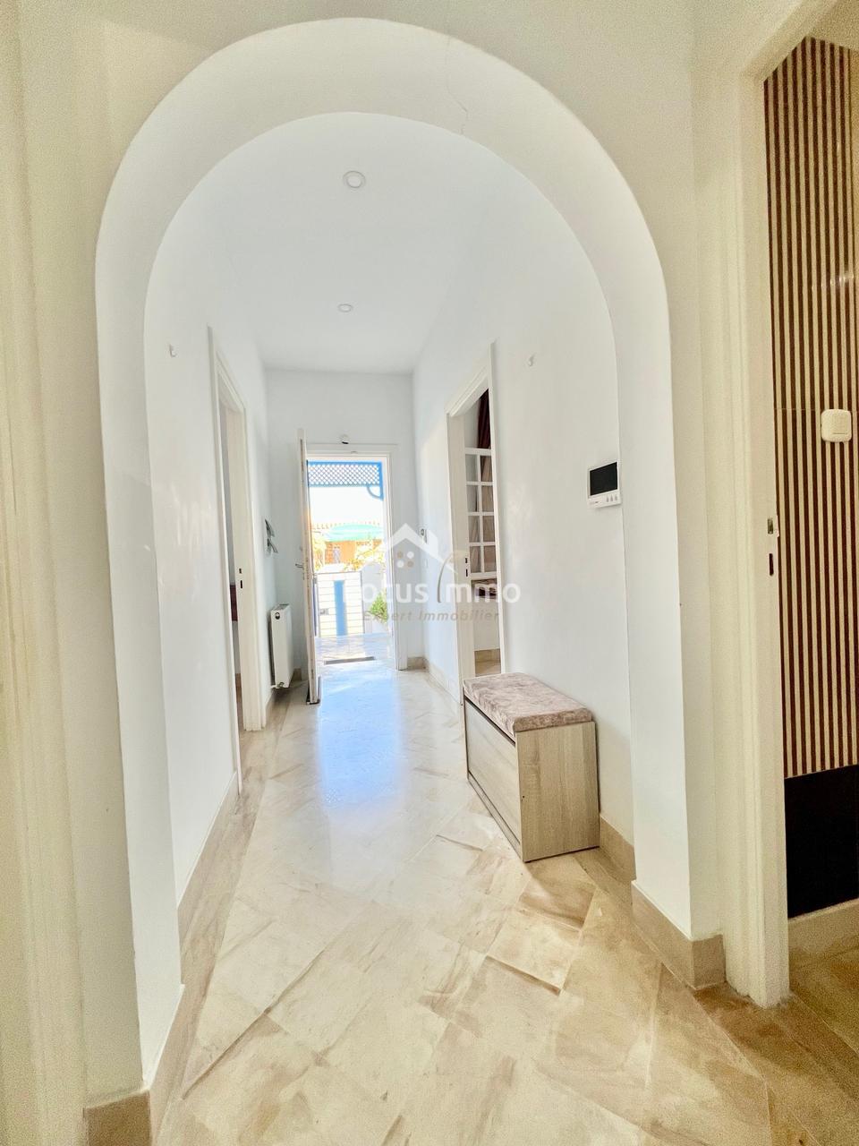 À louer, un magnifique rez-de-chaussée de villa S+2 entièrement meublé, situé à La Marsa Corniche, dans un quartier résidentiel calme, sécurisé et très recherché. Ce bien bénéficie d’une entrée totalement indépendante ainsi que d’un grand jardin verdoyant, offrant un cadre de vie privilégié alliant confort, intimité et proximité de la mer.