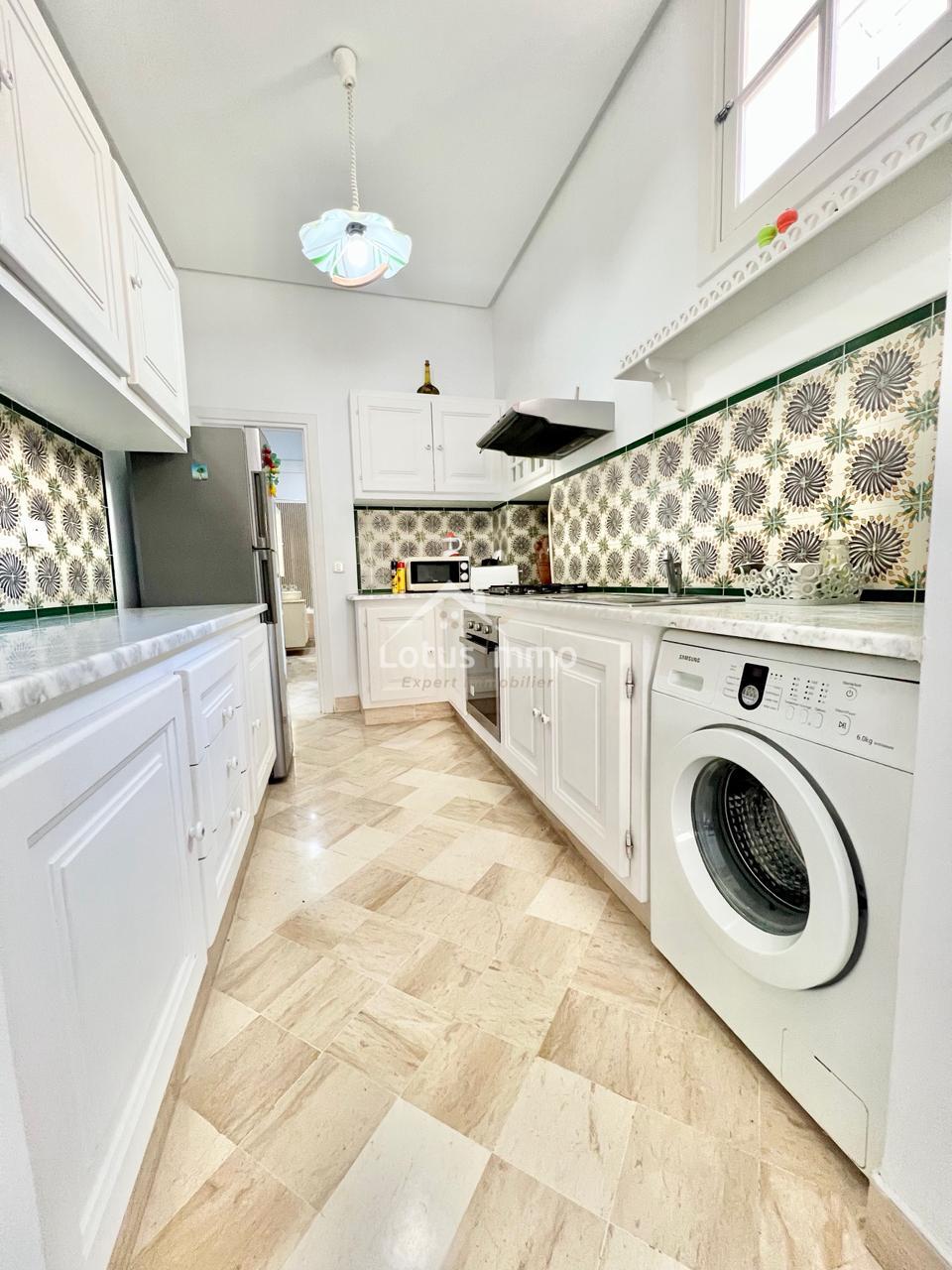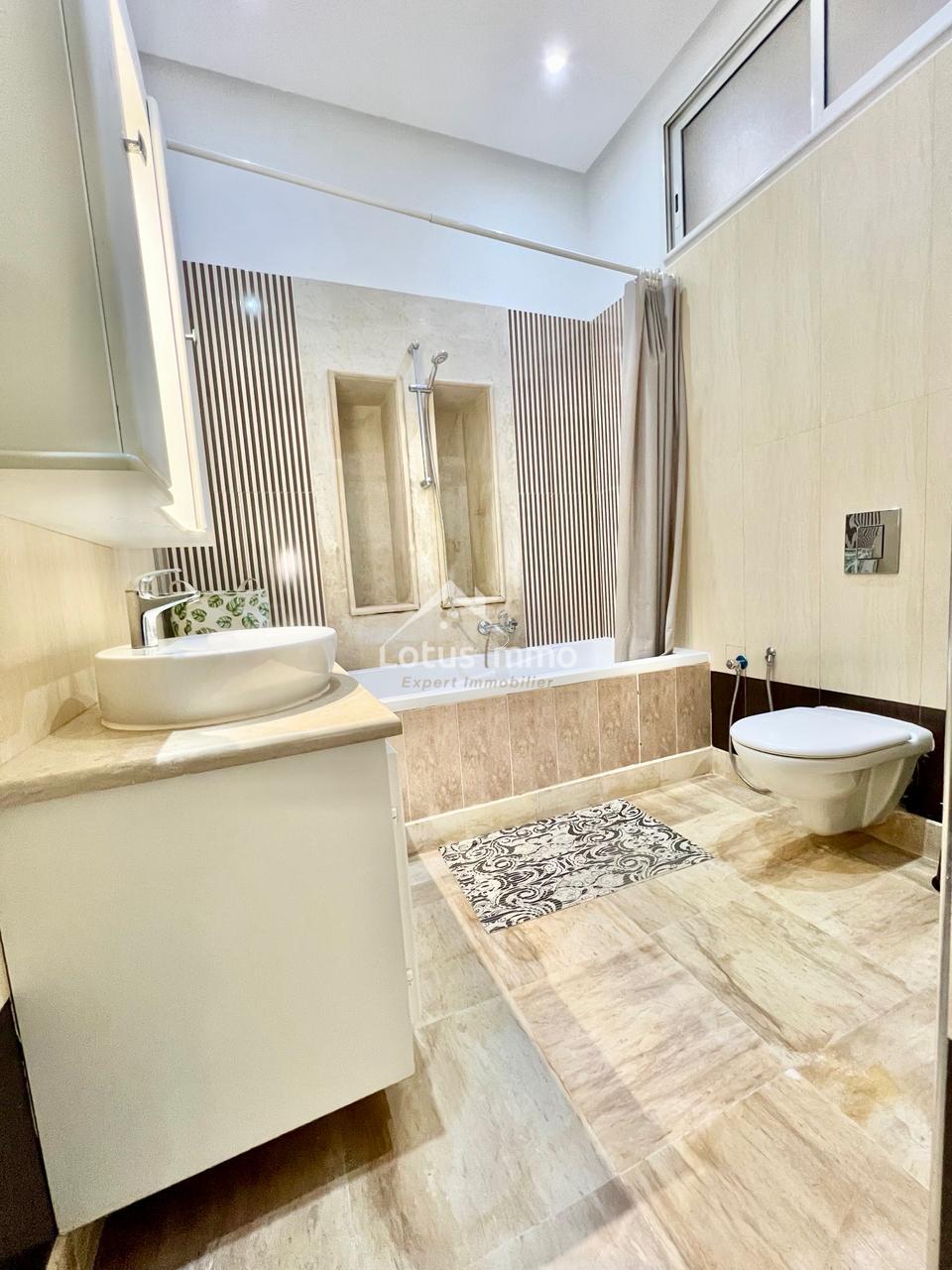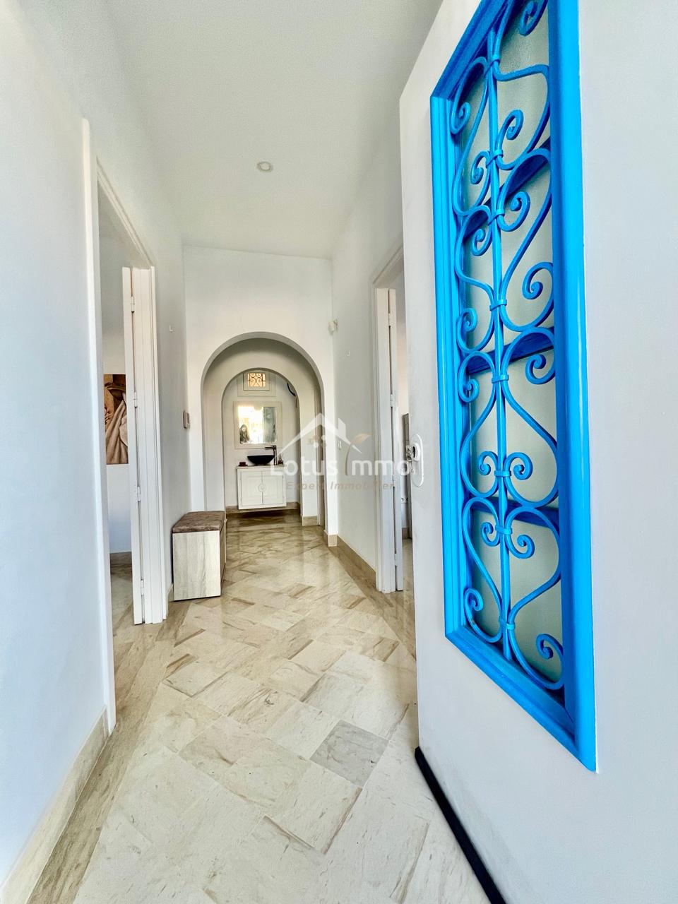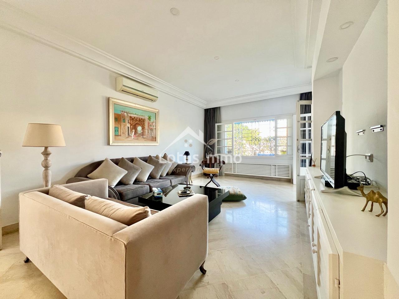À louer, un magnifique rez-de-chaussée de villa S+2 entièrement meublé, situé à La Marsa Corniche, dans un quartier résidentiel calme, sécurisé et très recherché. Ce bien bénéficie d’une entrée totalement indépendante ainsi que d’un grand jardin verdoyant, offrant un cadre de vie privilégié alliant confort, intimité et proximité de la mer.