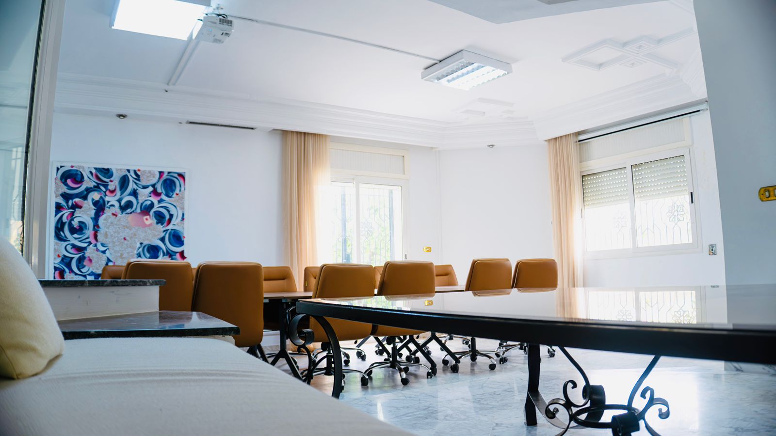 - Salle de réunion équipée pour les rencontres professionnelles.