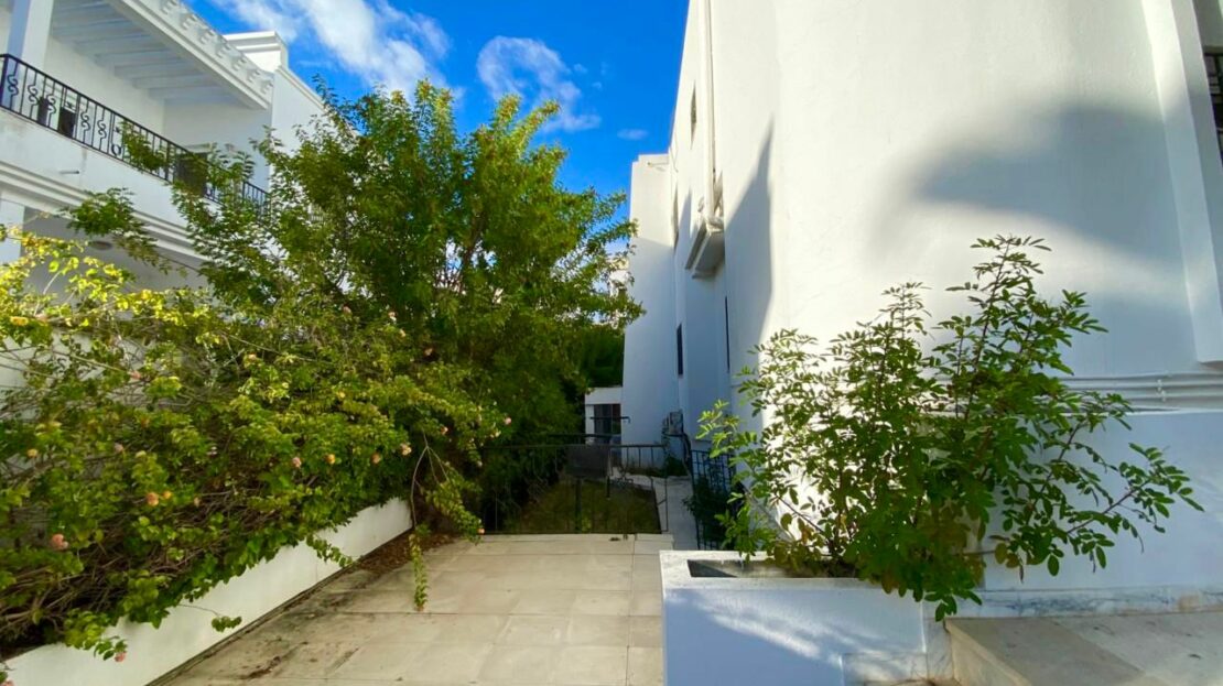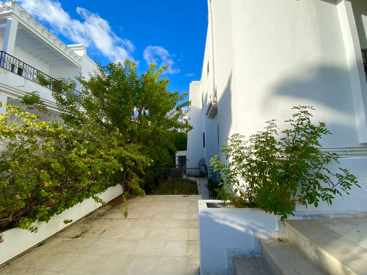 Des oliviers et palmiers sont implantés sur le terrain