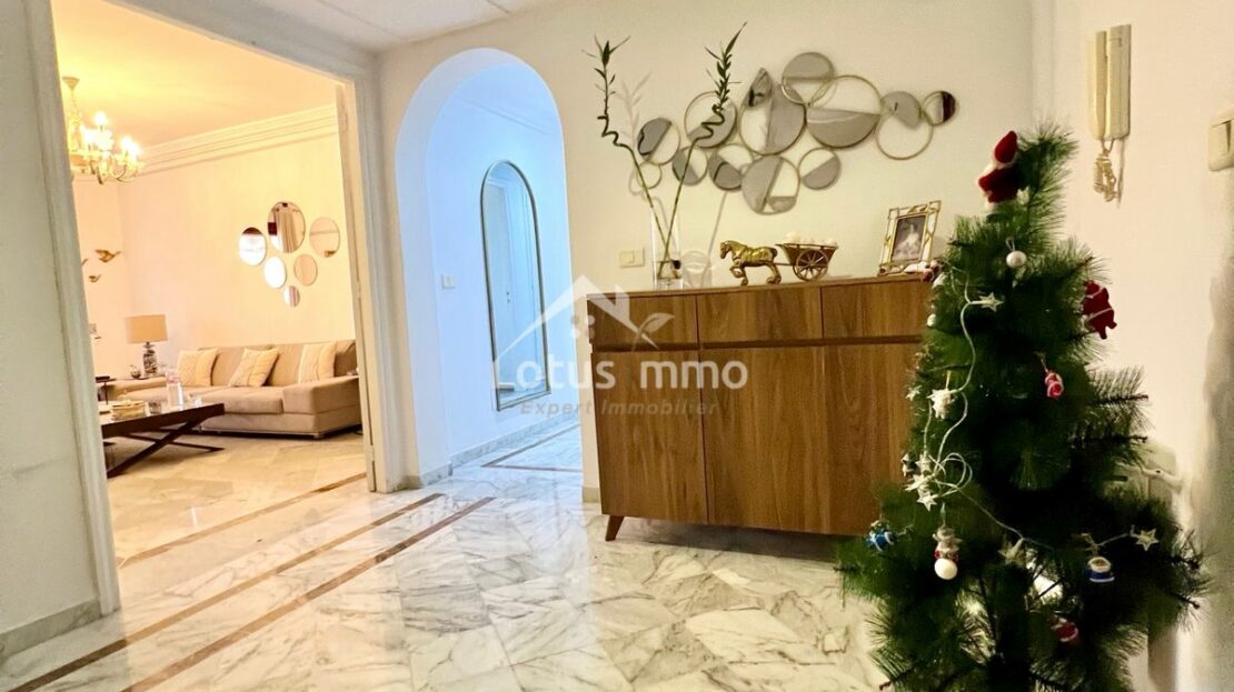 Nous vous proposons à la vente un spacieux appartement S+3 entièrement rénové, idéalement situé à Ennasr 2, dans une résidence bien entretenue et équipée d’un ascenseur. Implanté au 7ᵉ étage, ce bien bénéficie d’une vue dégagée, d’une excellente luminosité naturelle et d’un cadre de vie confortable, alliant modernité, élégance et fonctionnalité.