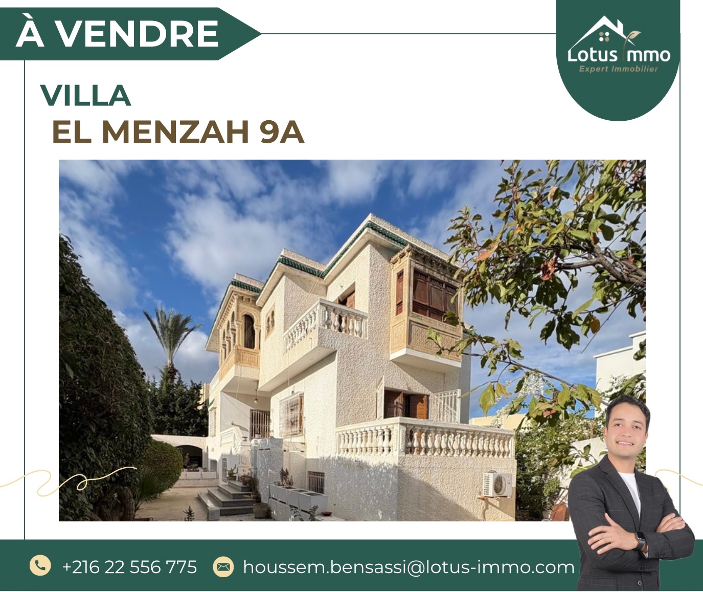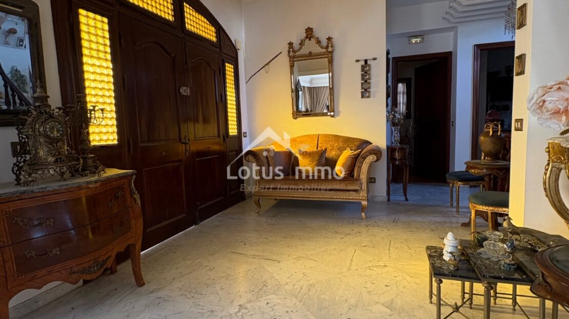 À vendre, une spacieuse villa située dans le prestigieux quartier d’El Menzah 9A, bénéficiant d’un emplacement stratégique à proximité immédiate des commerces, des écoles, des cliniques et des principaux axes routiers. Édifiée sur un terrain de 500 m² et offrant une surface bâtie totale de 330 m² répartie sur trois niveaux, cette propriété représente une véritable opportunité pour ceux qui recherchent un bien à fort potentiel, avec la possibilité de le rénover et de le moderniser selon leurs goûts et leurs besoins.