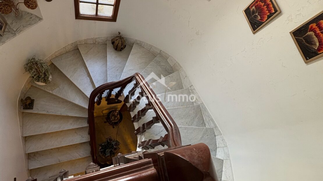 Le premier étage est entièrement dédié à l’espace nuit et propose une grande suite parentale offrant de généreux volumes, deux chambres avec balcon, une salle de bain ainsi qu’un séjour pouvant servir de coin télévision ou d’espace lecture. La disposition de cet étage permet de créer un cadre intime et confortable, tout en offrant des possibilités de réaménagement moderne, notamment pour optimiser les rangements et créer des espaces personnalisés.